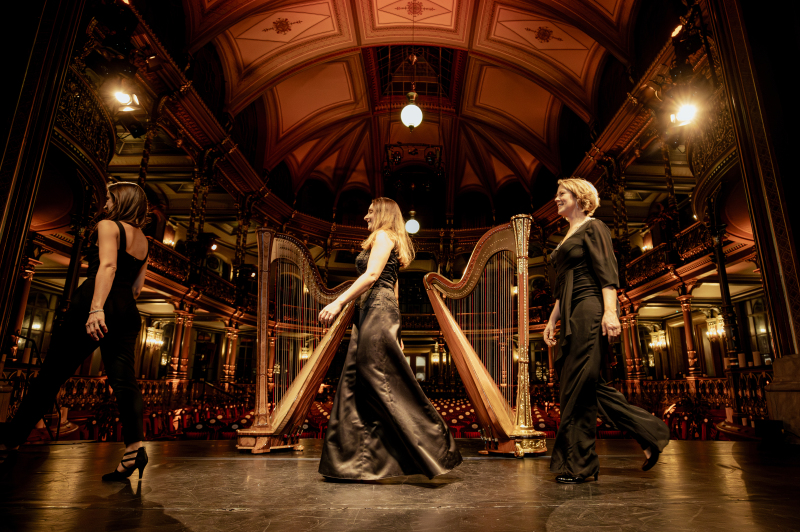 ... Freude, Leidenschaft und bezaubernde Harfenklänge. Als seit Jahren zusammengewachsenes Ensemble teilen die Konzertharfenistinnen Kirsten Ecke, Feodora Mandel und Doesjka van der Linden spürbar ihre große Liebe für ihr Instrument und für das gemeinsame Musizieren.